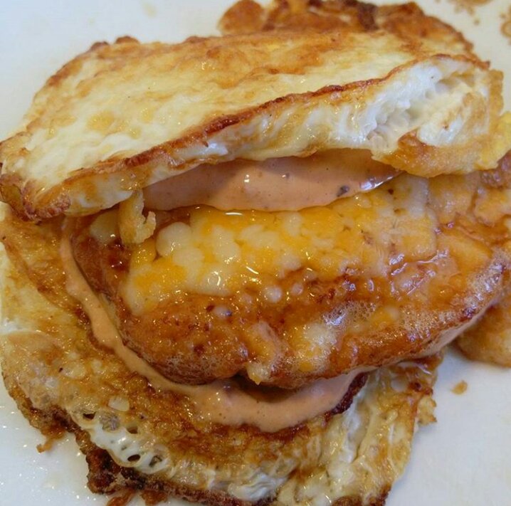 * Crispy Cheese Fried Egg Buns *