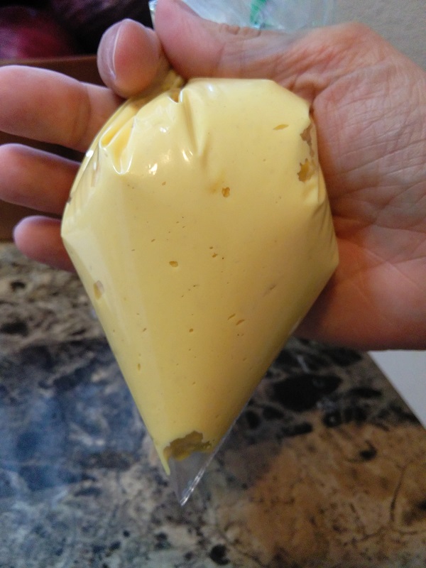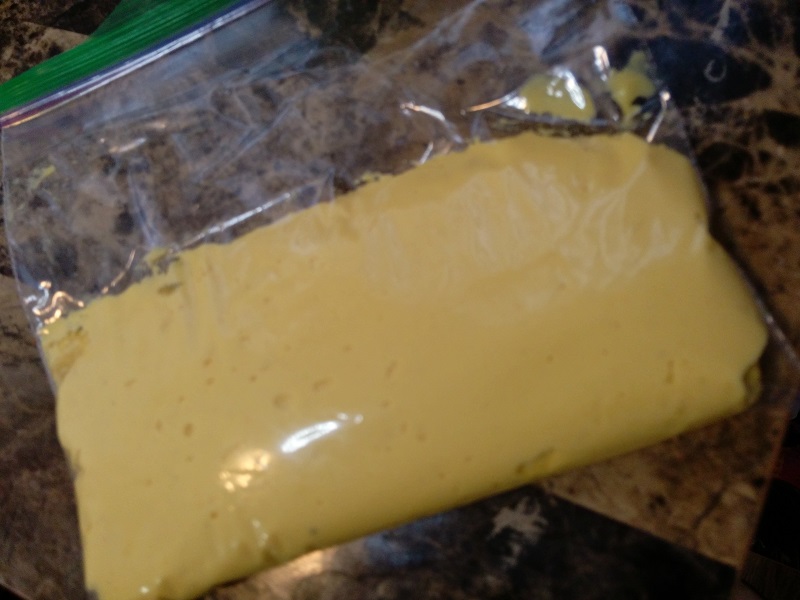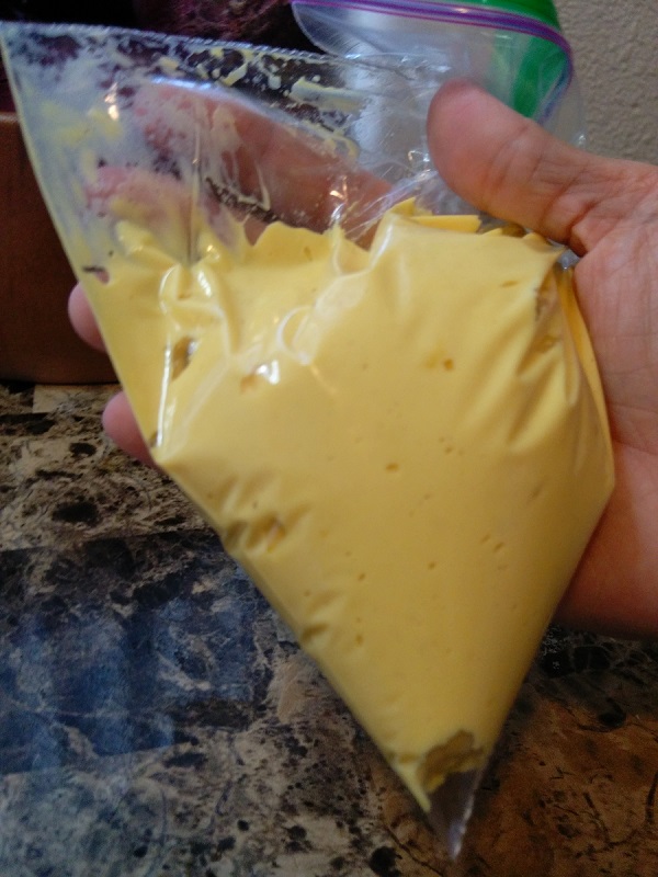 Put yolk mixture into a sandwich bag, smush down to the bottom and seal.
