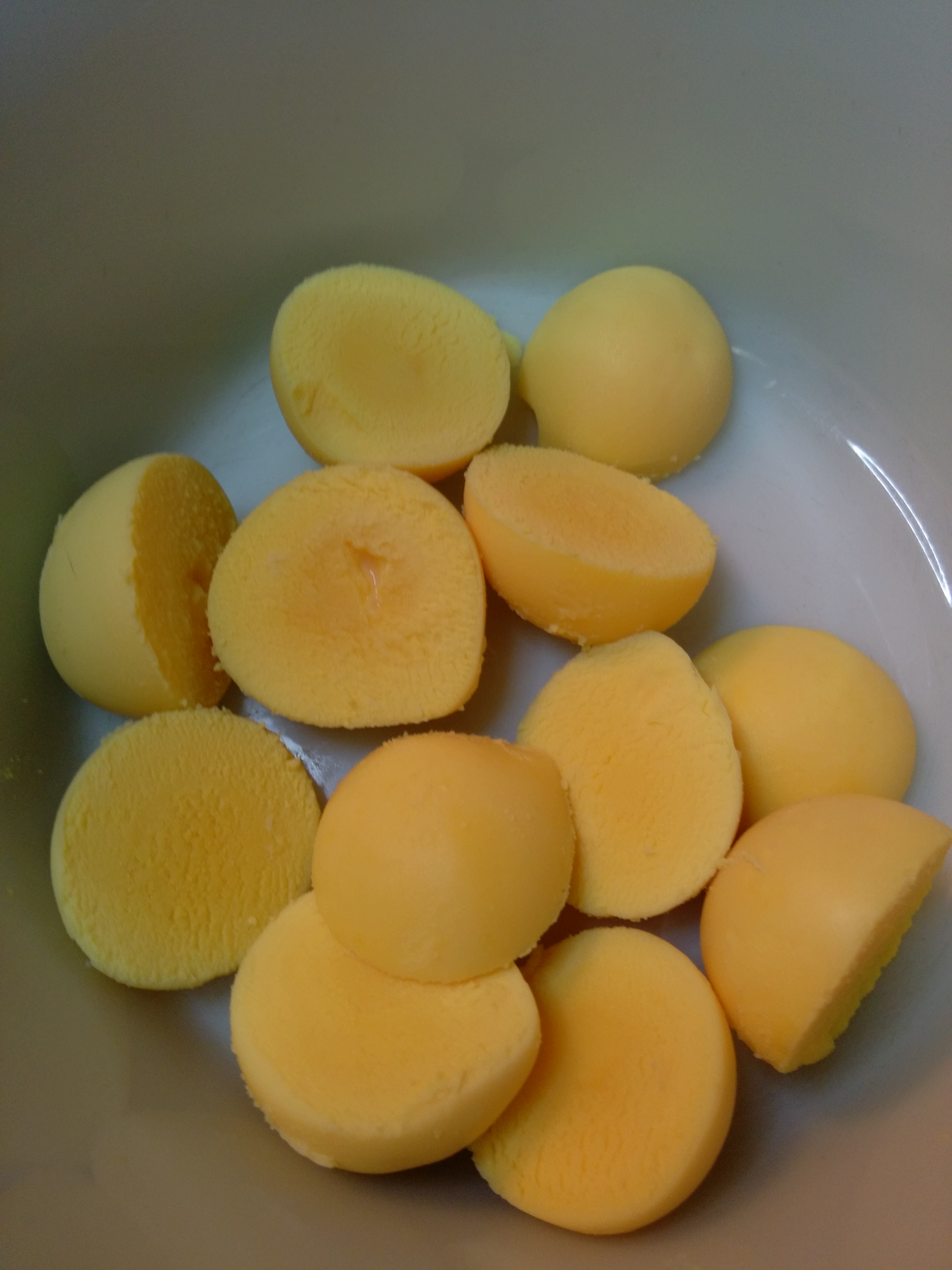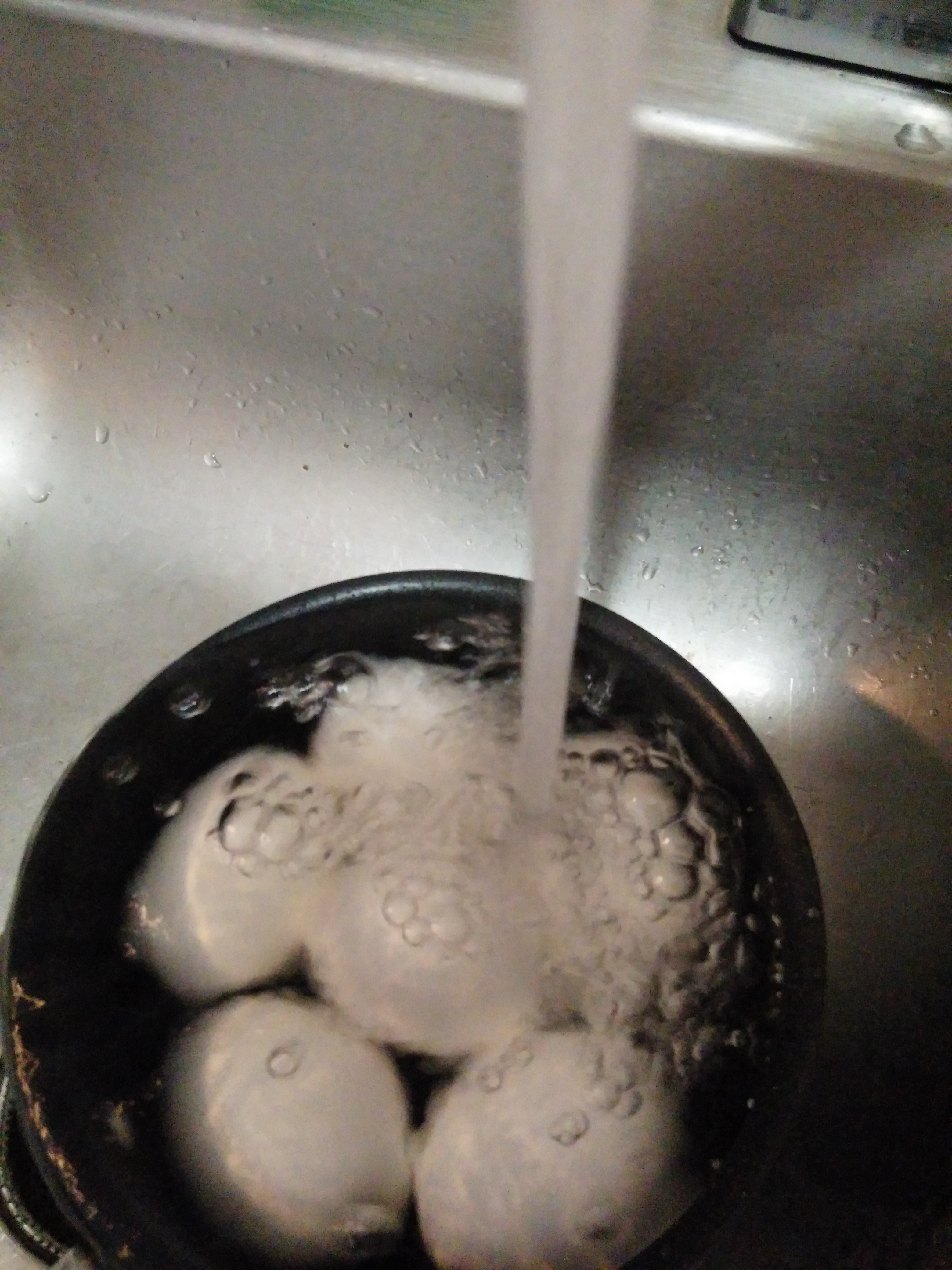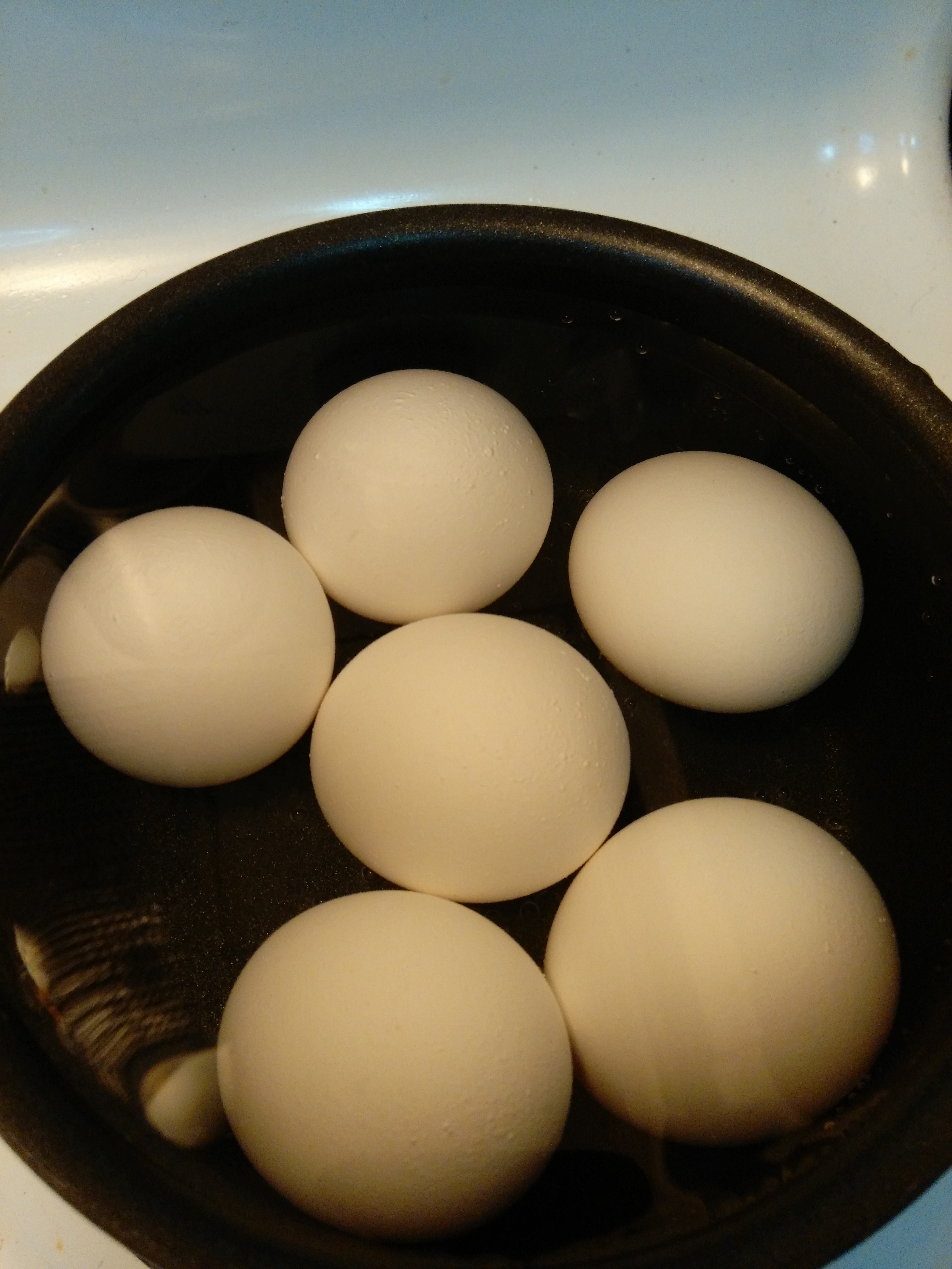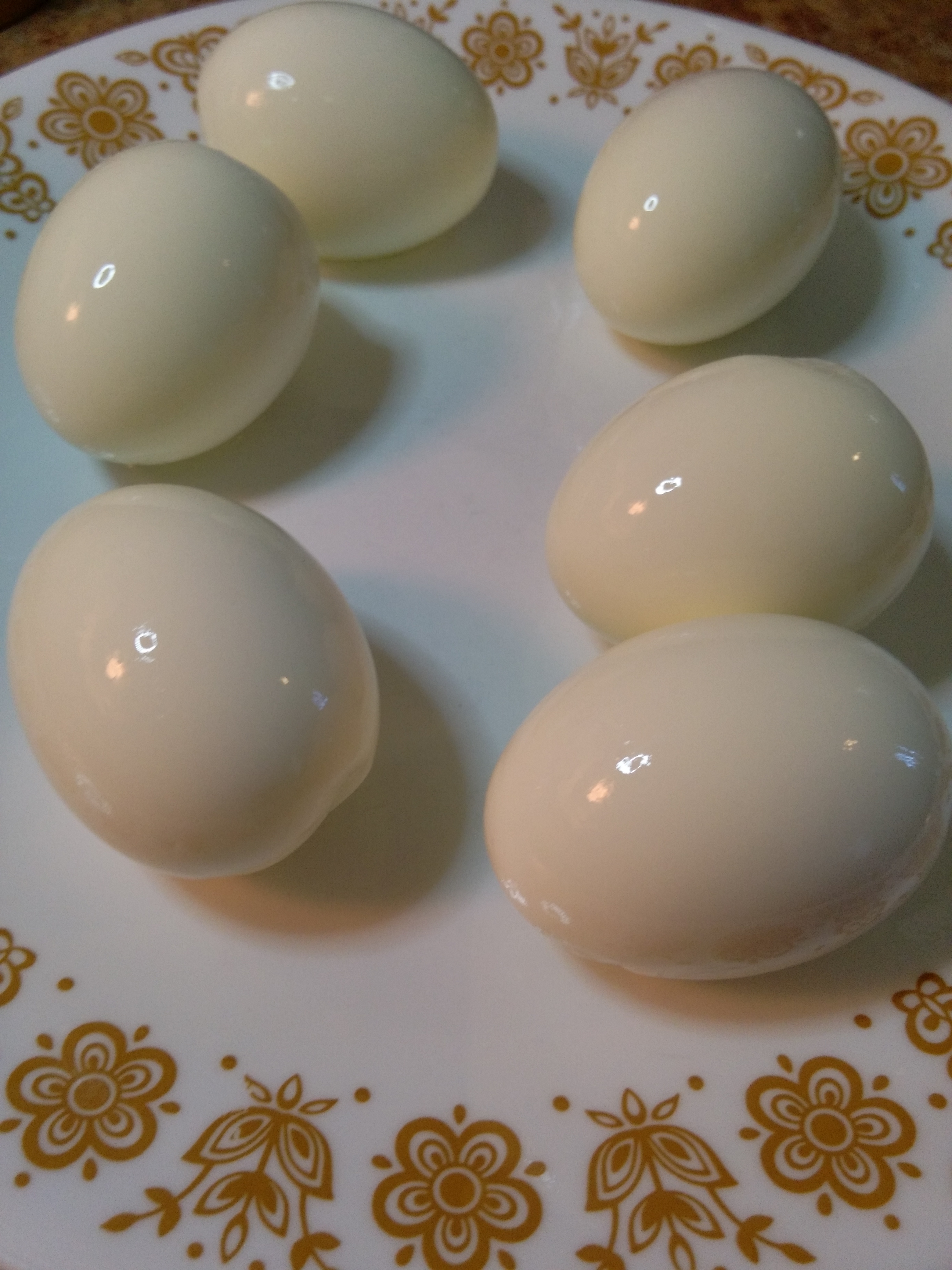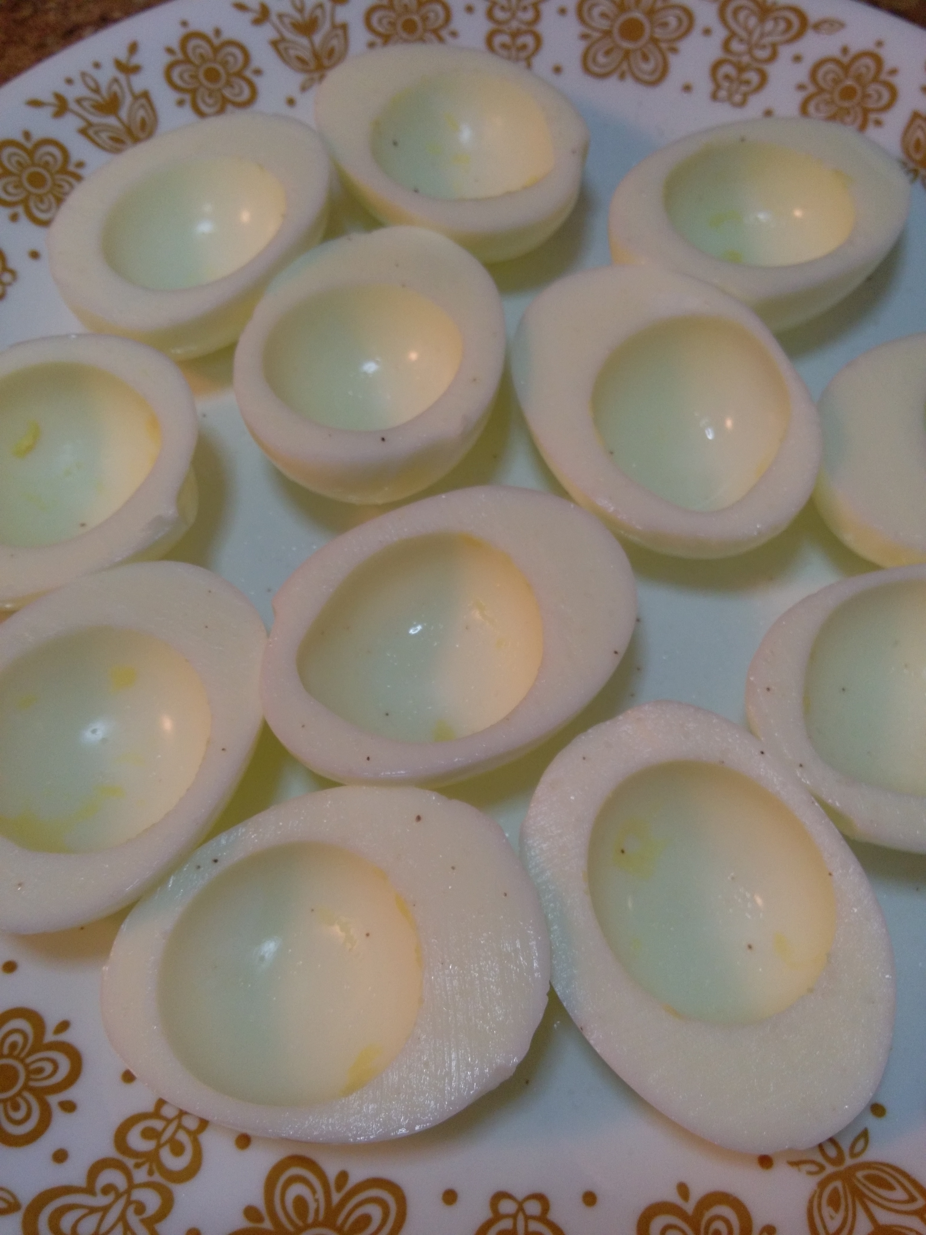 You want to start with perfect hard boiled eggs – green rings need not apply!