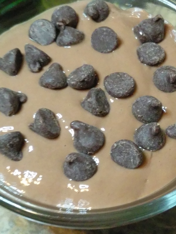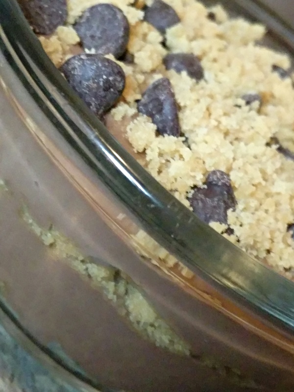 Put cookie crumbs in the bottom of your bowl, top with chocolate pudding and repeat 1 more time…then top with 1 tbl of sugarfree chocolate chips and the remaining cookie crumbs.
