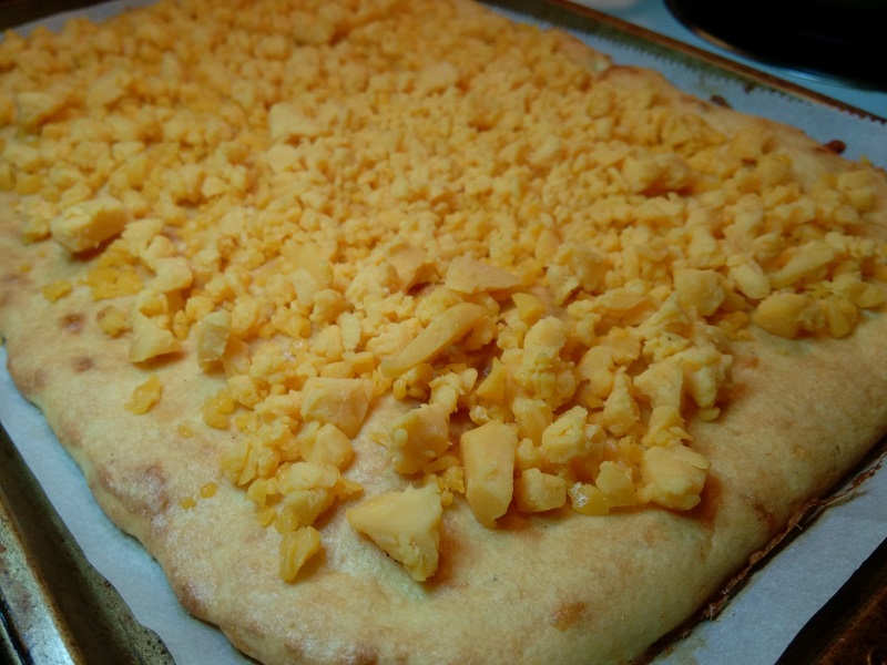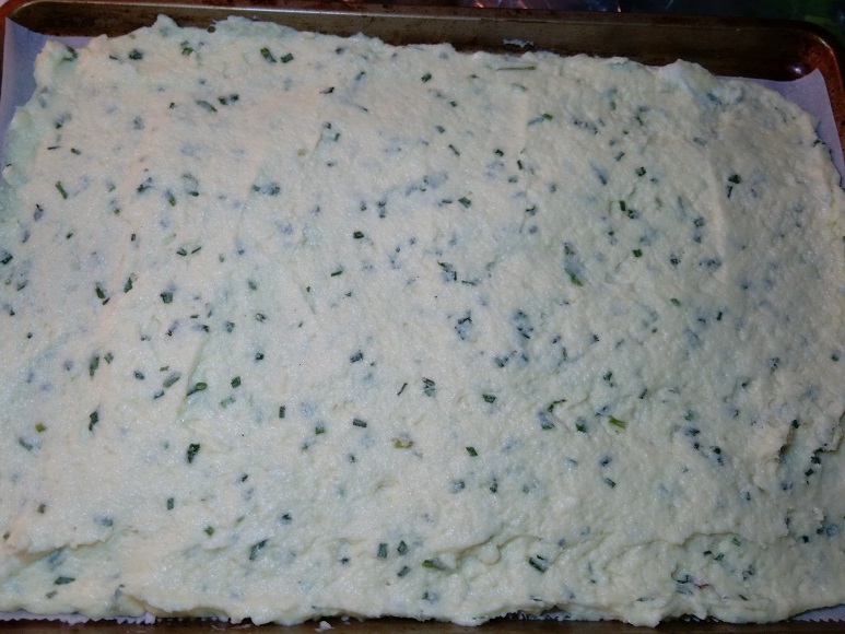 For Crust – Spread dough to edges of parchment trying to keep the same thickness throughout.